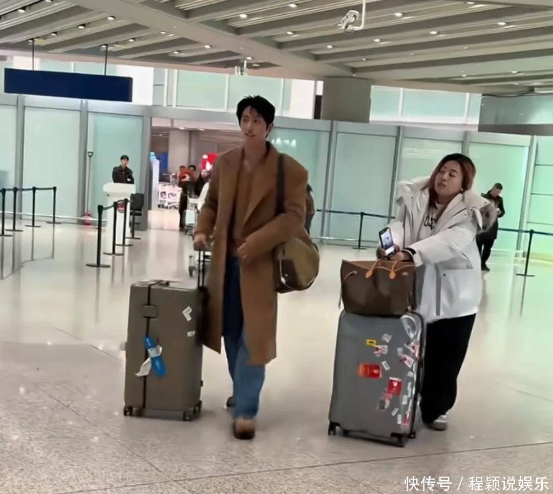 王凯沐的女助理同样是身材胖乎乎,个子也不高,特别是拖着行李箱小跑步的姿态跟大妮像极了。